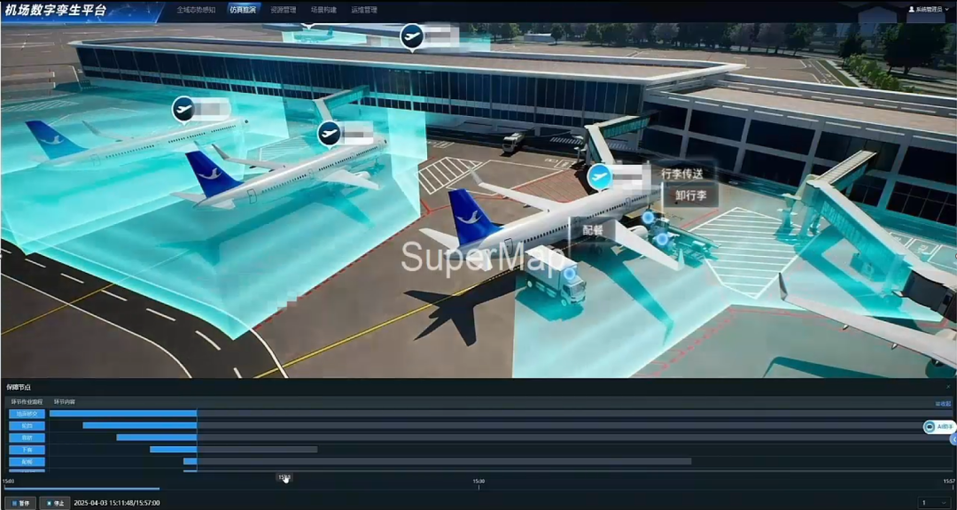 为响应民航局《全机场管理(TAM)建设指南(试行)》中“整合机场全业务、融合多维度数据,实现空侧陆侧智能化一体化管理”的要求,超图软件(300036)依托SuperMap GIS打造机场数字孪生系统(以下简称“系统”)。系统接入机场信息模型(AIM),融合物联网、大数据、AI、AR、VR等技术,打造机场全域态势感知、飞行区运行保障、运行仿真推演、设施设备运维管理、机场运行协同、绩效指标分析等应用场景,赋能全机场管理,为机场运营决策与旅客优质出行提供双重支撑。